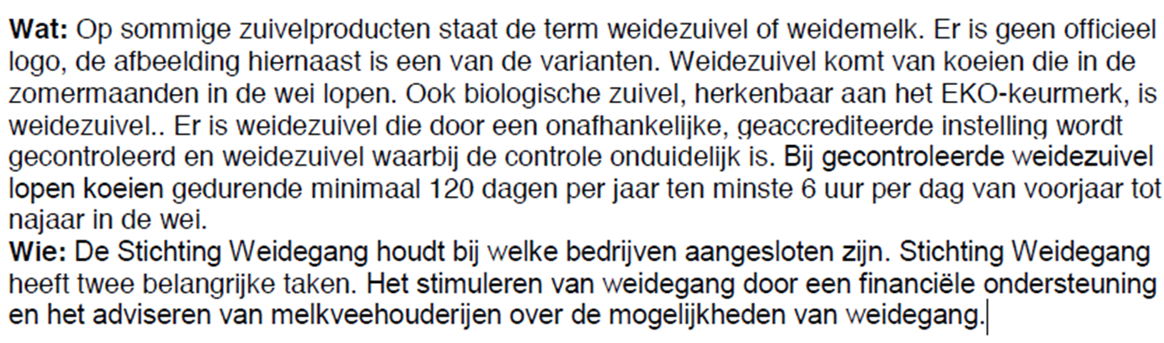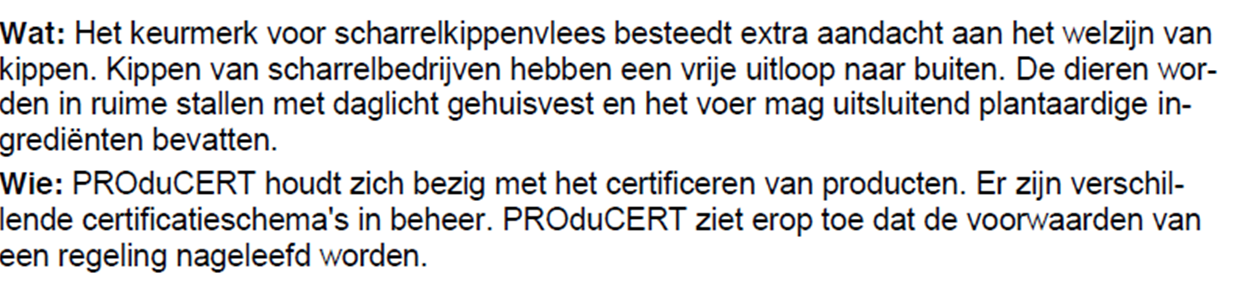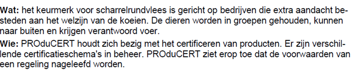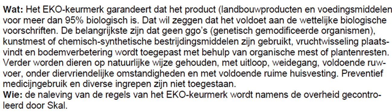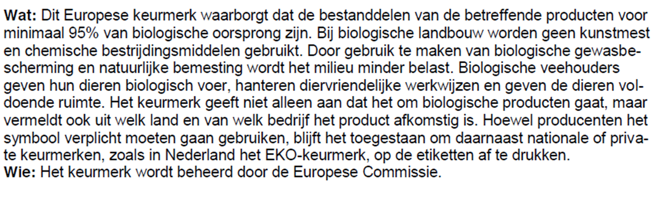 Voor de onderstaande producten bestaan de onderstaande labels en wijzers. Een goede publicatie hier over is hier te zien.