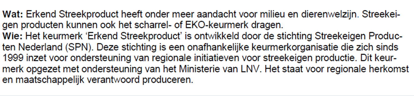 Keurmerk Erkend Streekproduct (www.erkendstreekproduct.nl) geeft hiervoor een handvat.