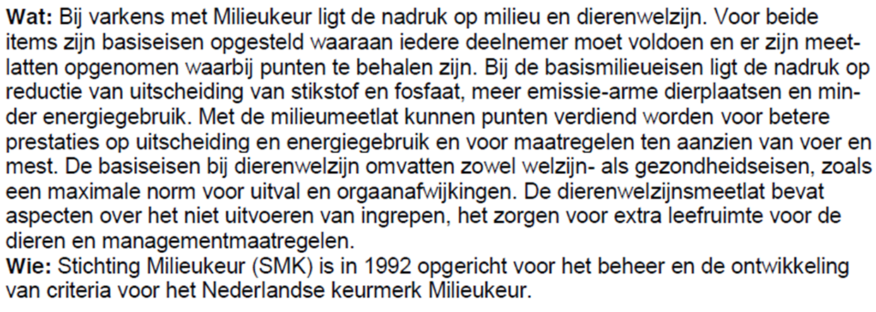 toepassing, van de mening over duurzaamheid en het niveau van acceptatie van risico’s. Dit onderwerp is daarom op dit moment geen onderdeel van de hiervoor genoemde duurzaamheidskenmerken.