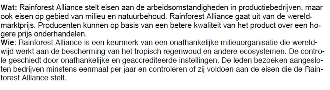 Voedsel en dranken zijn duurzaam geproduceerd als het gaat met aantoonbaar respect voor dieren, arbeiders en natuurlijke hulpbronnen via een productie met zo min mogelijk energie (vervoer) en water én via eerlijke handel.