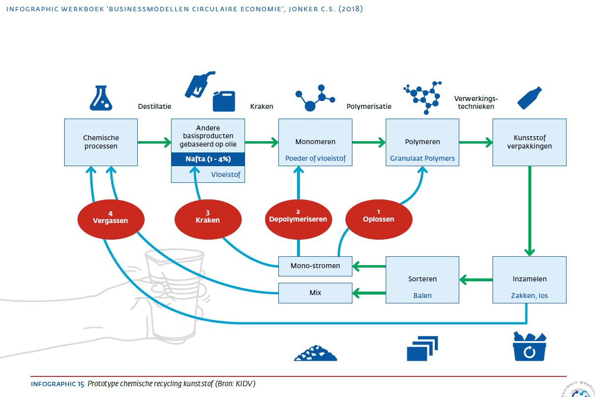 De bedrijven SABIC en Plastic Energy zijn bezig een fabriek te bouwen waar plastic afval chemisch kan worden gerecycled, maar in het kader van de Circular Hub ontwikkelde Plastic Energy een speciale technologie waarbij plastic afval duurzaam wordt omgezet in zogenoemde pyrolyse-olie, waarvan vervolgens weer nieuw plastic kan worden gemaakt. De recyclingfabriek moet in 2021 in bedrijf gaan.