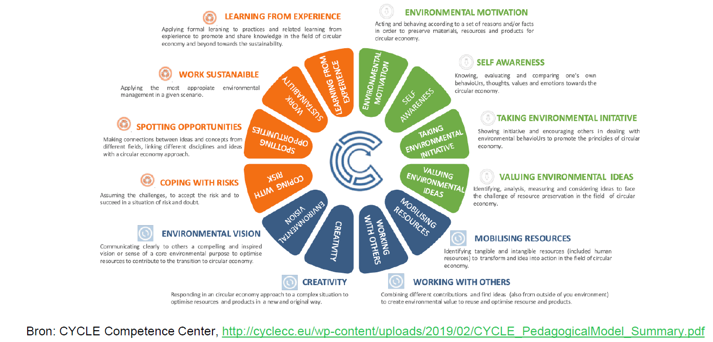 De onderstaande competentiecyclus laat zien dat je t.o.v. de circulaire economie